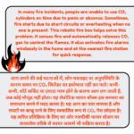 In many fire incidents, people are unable to use CO₂ cylinders on time due to panic or absence. Sometimes, fire starts due to short circuits or overheating when no one is present. This robotic fire box helps solve this problem. It senses fire and automatically releases CO₂ gas to control the flames. It also activates fire alarms wirelessly in the home and at the nearest fire station for quick response.