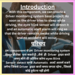 In This Project We show when driver drive the car and his eyes blinking and he close his eyes for more then 5 second or he try to sleeping then time sensor sense the eyes and start the alarm and if driver ignore the alarm or his is going to deep sleep then after alarm start 5 second automatic car stop and when drive open his eyes then alarm stop and he can start Car , So This is our Idea it’s amazing and full working idea , This idea full work on infrared module and Relay Module So it’s Making Cost Very Low