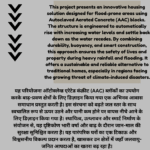 This project presents an innovative housing solution designed for flood-prone areas using Autoclaved Aerated Concrete (AAC) blocks. The structure is engineered to automatically rise with increasing water levels and settle back down as the water recedes. By combining durability, buoyancy, and smart construction, this approach ensures the safety of lives and property during heavy rainfall and flooding. It offers a sustainable and reliable alternative to traditional homes, especially in regions facing the growing threat of climate-induced disasters.Natural Disaster Management Project