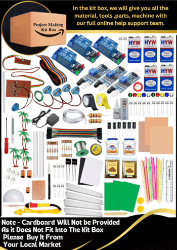 In this project kit box we will give you all components and parts , Extra decoration materials , How to make full step by step video and 3D circuit diagram , Reading pages , Synopsis file , Online training access There will be more wires around the field wall , The direction from which the animals are entering the fields, then on coming in touch with the wire which is around, the alarm will start sounding from the same direction, so that the animal will feel that someone is coming and he will run away due to which the farmer is not in the fields. There will be safety and there will be no harm to the farms and animals. So If farmer go to out side of field then his crop save by animal Best Part Of This Project , It’s System Making Cost Very Low Any Farmer Can buy or Make Himself And Use In Field .